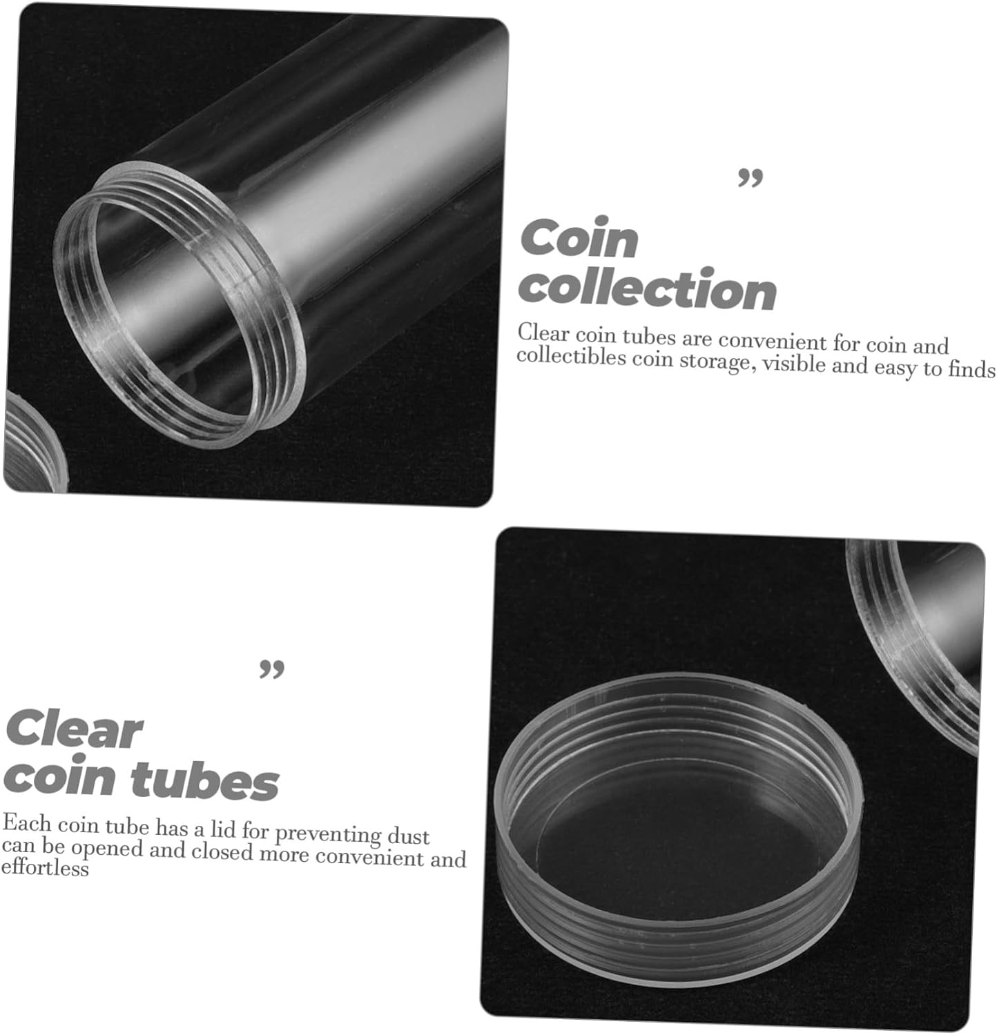 Contenitore per raccolta monete - ogni tubo per monete ha un coperchio per proteggerlo da eventuali danni, si apre e si chiude in modo più comodo e senza sforzo, Accessori per raccolta monete Portamonete in plastica - questi tubi per monete sono realizzati in materiale affidabile con buona fattura, Tubi per monete per raccolta monete - I tubi trasparenti per monete sono comodi per riporre monete e oggetti da collezione, visibili e facili da maneggiare, Portamonete Portamonete per quarti - Adatto per la maggior parte dei tipi di monete, impedisce alle monete di scivolare e graffiarsi, portamonete per collezionisti Portamonete: puoi aprire e chiudere facilmente e comodamente questo portamonete trasparente a mano, contenitore a tubo