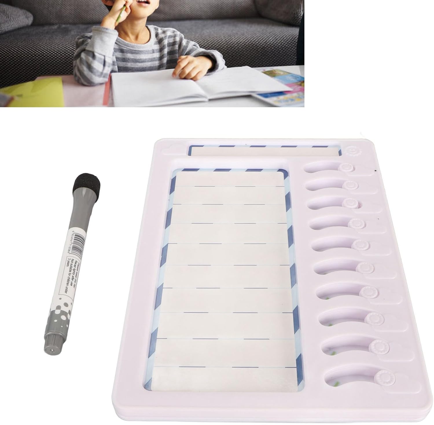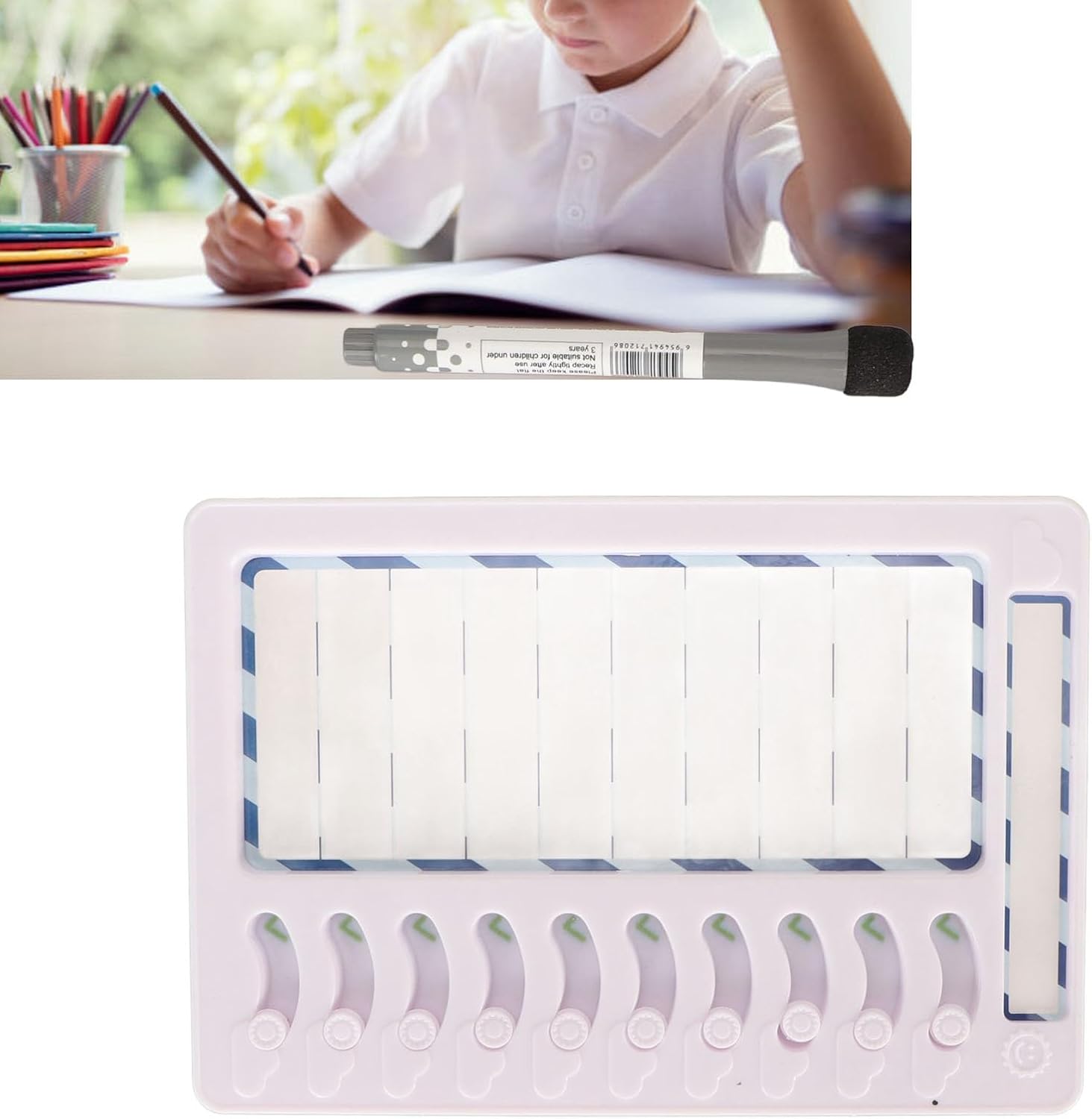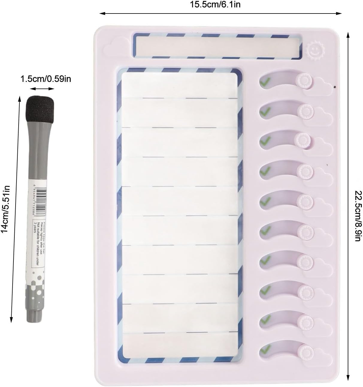 Personalizzabile e facile da usare: la lavagna bianca cancellabile a secco consente una facile scrittura e cancellazione, rendendo semplice la personalizzazione per il tuo bambino. Utilizzo versatile: usalo come grafici di ricompensa per bambini, grafici di routine quotidiana per bambini, liste di controllo per , grafici di comportamento in classe, ecc. Design interattivo: i pulsanti di scorrimento rendono divertente per i bambini contrassegnare le attività completate, rendendolo un efficace dispositivo di monitoraggio comportamentale. Materiale premium: tabella dei lavori cancellabile realizzata in ABS e magnete, questa resistente agenda giornaliera garantisce un uso duraturo. Gestisci facilmente le attività quotidiane: mantieni i tuoi figli organizzati e sviluppa abitudini positive con questa agenda giornaliera cancellabile.