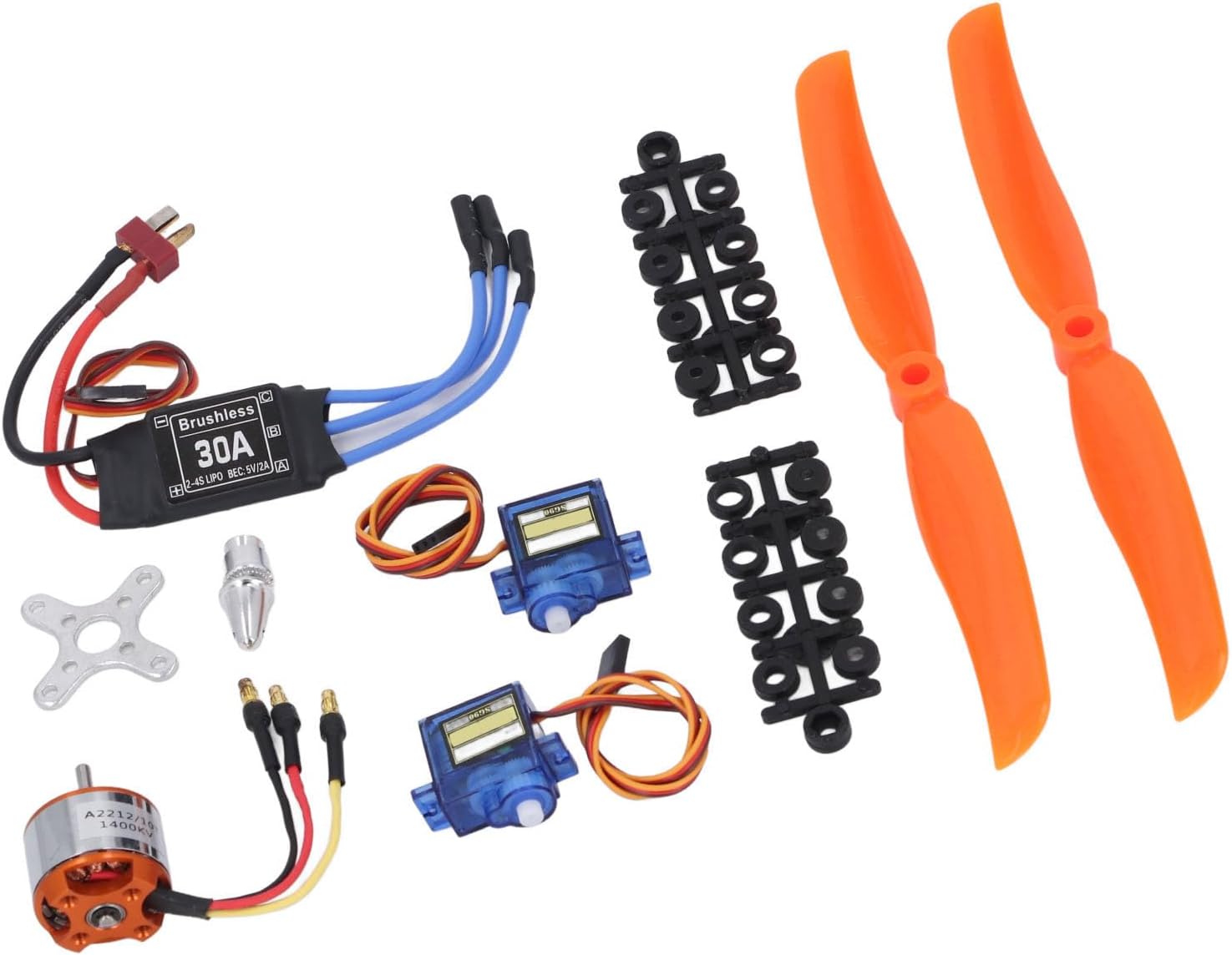 [Utilizzare senza sforzo] Processo di installazione semplice per configurazione e utilizzo rapidi [Controllo preciso] servo SG90 con una capacità di movimento precisa di 0,12 secondi/60 gradi [Motore senza spazzole più alte] A2212 1400KV con alta compatibilità per le batterie LiPo 2-3S [Materiali resistenti] costruiti in lega di alluminio, ottone e addominale per la longevità e la stabilità [Set completo] Kit completo con motore, ESC, Servos, Hellices e altro ancora