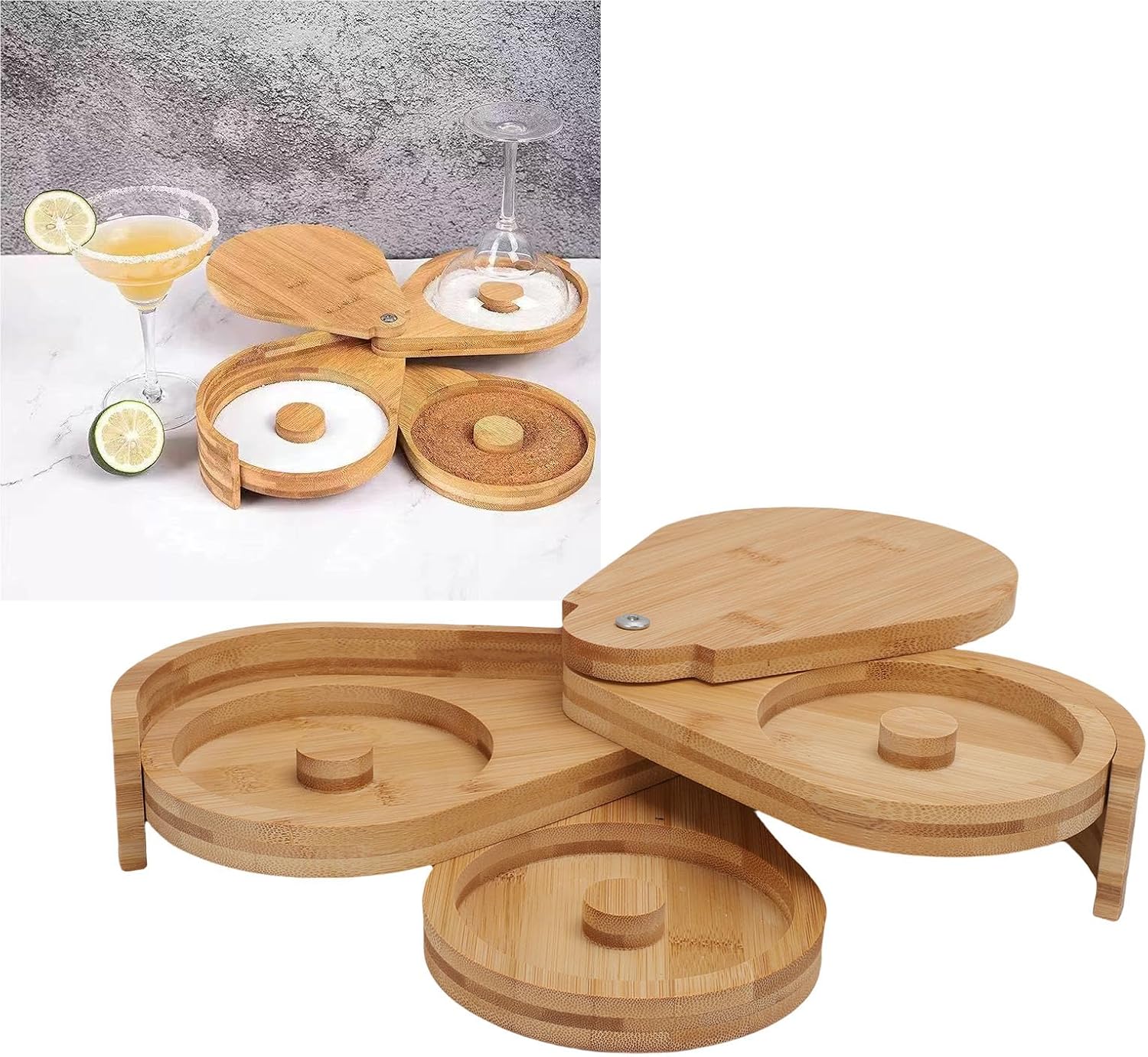[Regolabile e compatto] Il bordo in vetro della barra a 3 livelli è compatto e semplice da aprire e chiudere, le viti possono essere regolate per un funzionamento migliore o accurato. [Ideale per le feste al bar di casa] Altamente funzionale per preparare cocktail di qualità da bar, il bordo sale è un'aggiunta indispensabile al bar di casa, ideale per ospitare feste. [Progettazione di stoccaggio efficiente] Il design del compartimento a tre strati del bordo del sale massimizza l'efficienza di stoccaggio, con spazi stretti che impediscono fuoriuscite durante l'uso. [Vassoio rotante sapientemente progettato] Il vassoio rotante per il sale è sapientemente progettato per garantire un bordo preciso del sale della margarita, migliorando l'attrattiva visiva e il sapore del cocktail. [Materiale Bambusoideae premium] Realizzato con bambusoideae premium, questo tagliasale offre una struttura robusta e affidabile con un peso sufficiente per rimanere stabile su superfici piane.