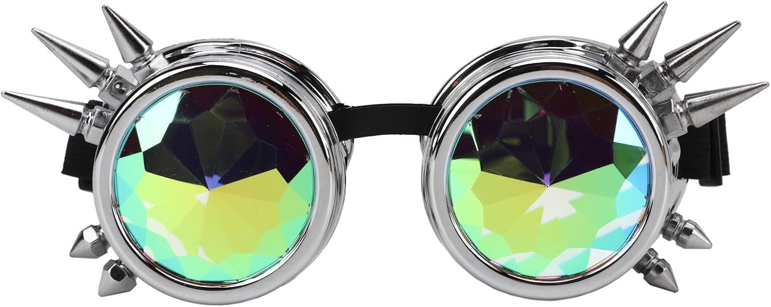 1. Squisiti artigianato: occhiali retrò, stile Steampunk sono mestieri squisiti con lenti caleidoscopiche piene di personalità. 2. Resto del naso regolabile: gli occhiali a vapore hanno un poggiapiedi regolabile, che corrisponde a una dimensione per facce grandi e piccole. 3. Con configurazione di gomma in gomma: gli occhiali da sole di caleidoscopio hanno una banda elastica regolare, che è molto elastica e adatta per la maggior parte dei di testa. V. 5. PC e ABS: gli occhiali a vapore sono costituiti da materiale premium PC e ABS, peso leggero e non si stancheranno dopo molto tempo. Dati tecnici: Tipo di articolo: occhiali per protezione Steampunk Materiale: PC, ABS Packfelist: 1 xsteampunk occhiali protettivi