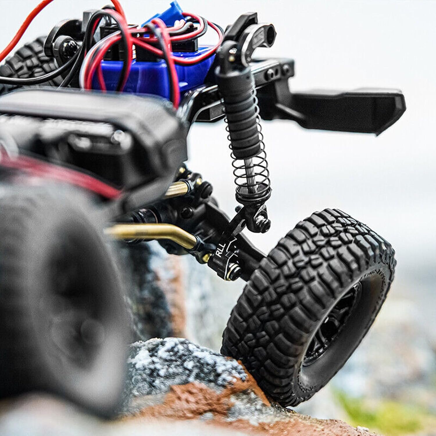 Lavorato a CNC, anodizzato nero, durevole e resistente all'usura. Maggiore articolazione nella sospensione Tieni le ruote a terra quando superi ostacoli più grandi Adatto per supporti ammortizzatori TRX4M, facile da installare. Eccellente parte di aggiornamento, rende la vostra auto più flessibile quando si superano gli ostacoli sul terreno