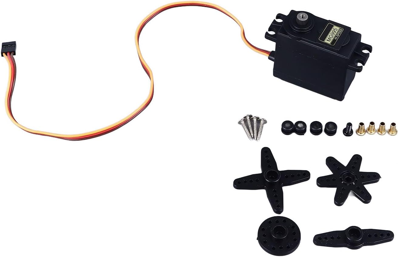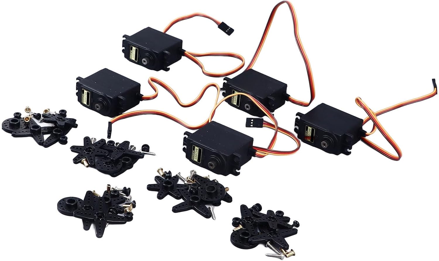 [Struttura affidabile] Questo motore servo analogico è stabile e affidabile, per i progetti di realizzazione di modelli. [Ad alte prestazioni] Presenta ingranaggi in plastica, rotazione di 180 gradi, coppia di 13 kg/cm e velocità 53-62R/m. [Kit versatile] include 5 set con braccia dritte, croce, rotonde e stelle per soddisfare varie esigenze. [Ampia applicazione] Adatto per robot bipedi, bracci robotici, auto a telecomando, barche e altro ancora. [Easy Installation] viene fornito con viti e maniche ad assorbimento d'urto semplice configurazione e un controllo preciso.