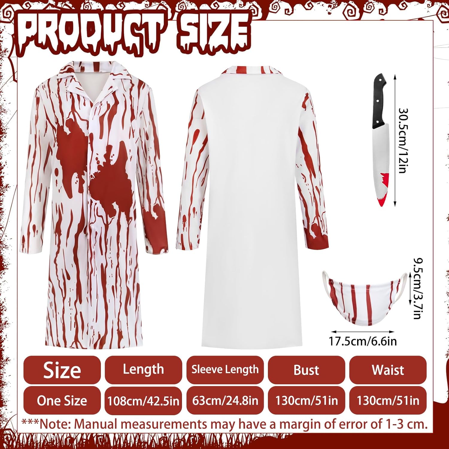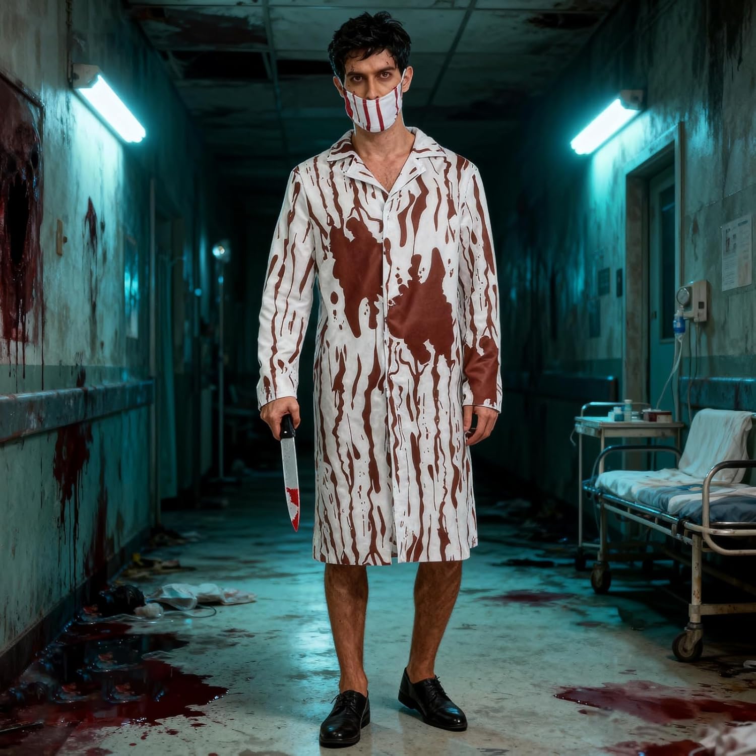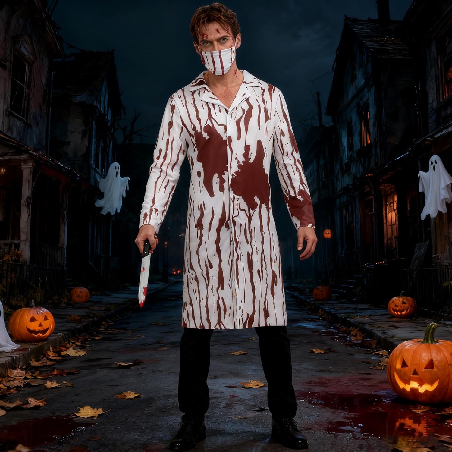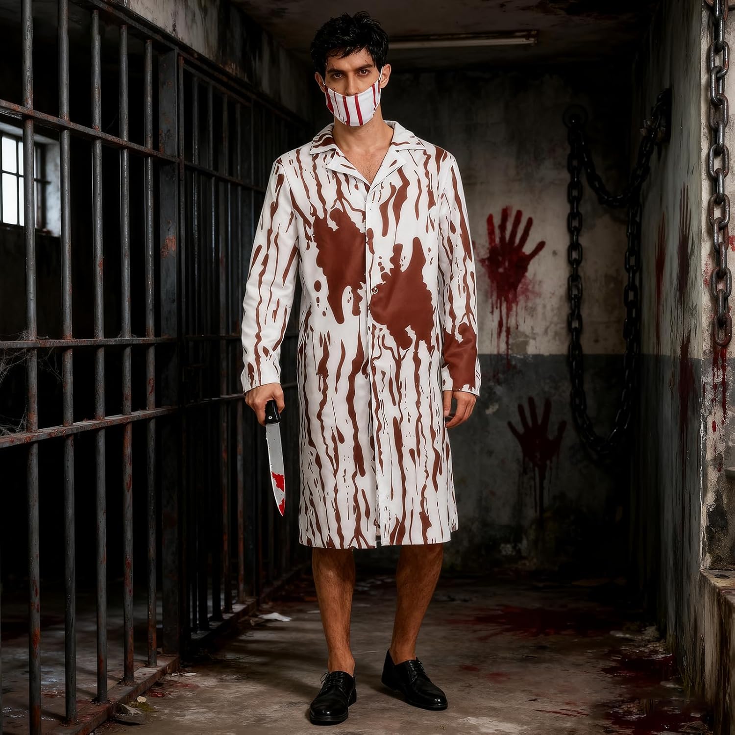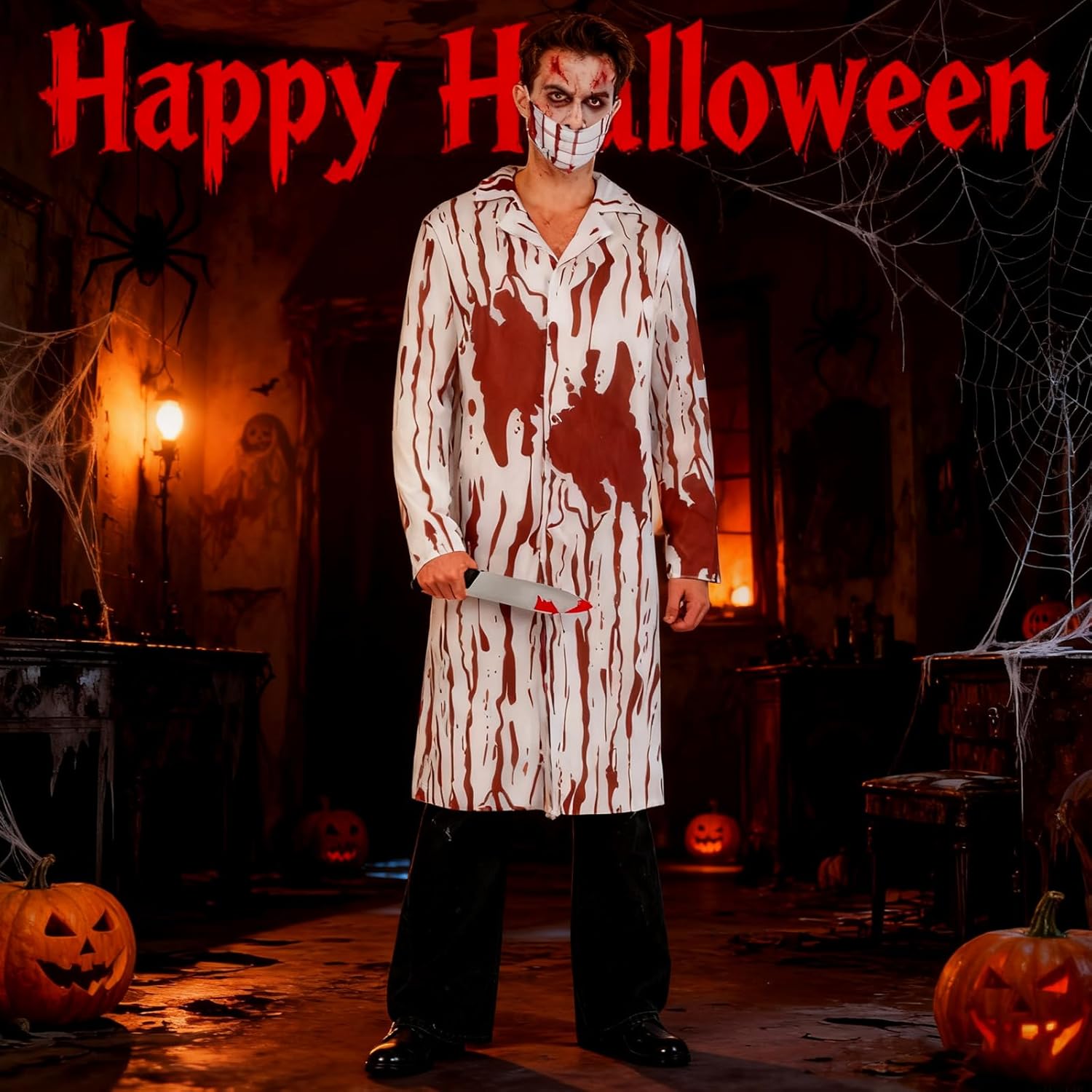 Zombie, costume da medico, zombie dottore sanguinoso, costume da chirurgo horror halloween, dottore spaventoso, set con camice medico, maschera medica, coltello con effetto sangue per