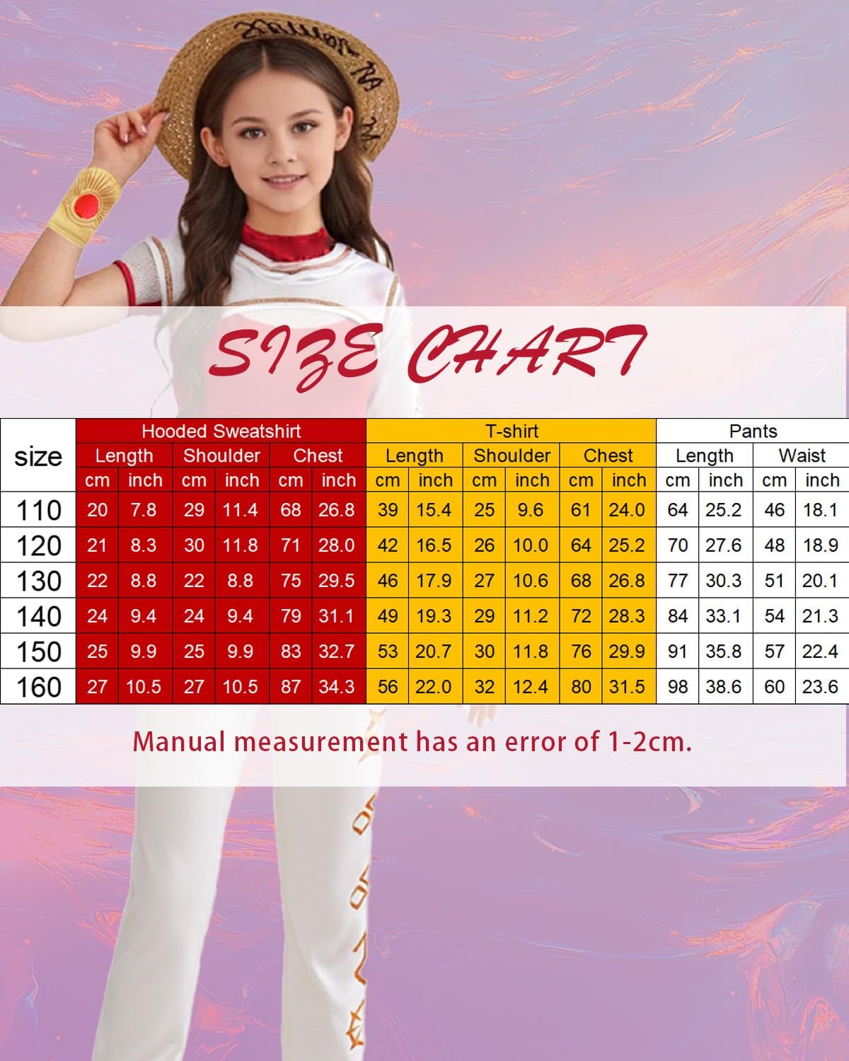 Benvenuti nel negozio Jackolume Costume da zombie per bambini, personaggio di Halloween, cosplay, cheerleader in rete, pantaloni con cappuccio, 4 pezzi uniformi, abiti uniformi, per bambini, ragazze, zombi, nova, Halloween, camminata e cheerleader, sarà un regalo speciale di Natale o di Halloween per i tuoi bambini Tabella delle taglie. Felpa con cappuccio 110: petto 77 cm, spalle 29 cm. 120: petto 71 cm, spalle 30 cm. 130: petto 75 cm, spalla 32 cm. 140: petto 80 cm, spalla 33 cm. 150: petto 80 cm, spalle 35 cm. 160: petto 87 cm, spalla 37 cm. T-shirt 110: petto 61 cm. 120: petto 63 cm. 130: petto 77 cm. 140: petto 71 cm. 150: petto 75 cm. 160: petto 80 cm. Pantaloni 110: vita 46 cm. 120: vita 47 cm. 130: vita 51 cm. 140: vita 54 cm. 150: vita 56 cm. 160: vita 60 cm. Materiale: poliestere. Dimensioni: 110-160 cm. Stile: come da immagine. La confezione include: 1 maglietta, 1 pantalone, 1 felpa con cappuccio corta, 1 cinturino. Precauzioni: 1. Potrebbe esserci un margine di errore di 1-3 cm dovuto alla misurazione manuale. 2. A causa dei diversi monitor e degli effetti della luce, il colore reale potrebbe essere leggermente diverso da quello dell'immagine. 3. Le taglie asiatiche sono più piccole rispetto alle taglie europee/US/UK, si prega di confrontare le misure dettagliate prima dell'acquisto