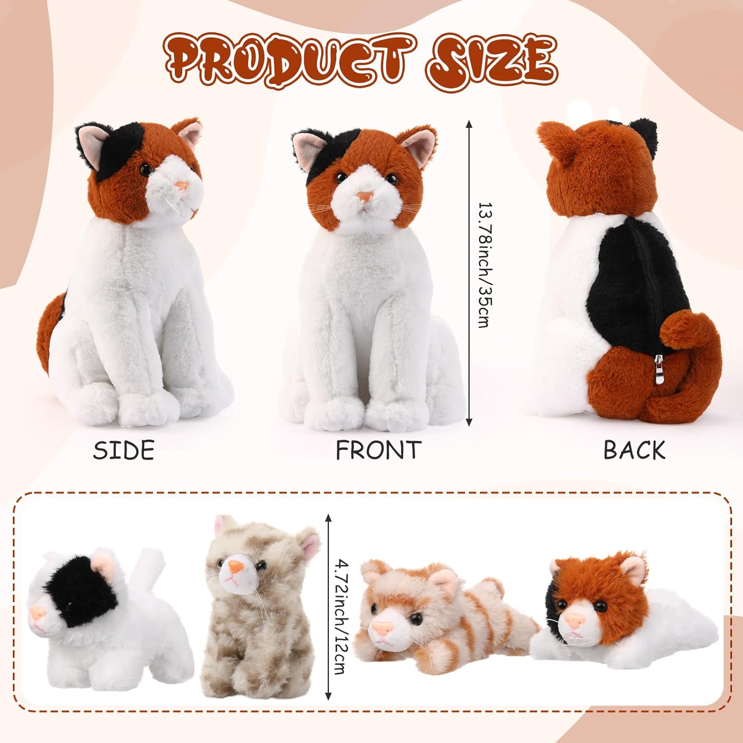 Set 5 in 1: riceverai un grande gatto di peluche con cerniera sul retro e 4 peluche a forma di gattino; I peluche a forma di gattino sono di diversi colori e molto vivaci e carini; Consentono ai bambini di creare varie combinazioni e scene di gioco, stimolano la creatività e aiutano lo sviluppo cognitivo Informazioni sulle dimensioni: il giocattolo animale gatto femmina grigio è alto circa 13,78 pollici e gli altri 4 gattini sono circa 4,72 pollici; La dimensione giusta può essere posizionata sul letto, sul divano, sulla vetrina, dando una sensazione carina e dolce; Si prega di notare che il prodotto è confezionato sottovuoto e verrà ripristinato al suo stato originale dopo essere stato inserito nell'asciugatrice per alcuni minuti dopo averlo ricevuto Qualità morbida: il set di animali di peluche a forma di gatto è realizzato in materiale peluche, morbido e confortevole, non danneggia la pelle ed è anche amico dei bambini, inodore e non sbiadisce facilmente; i loro dettagli sono squisitamente progettati per attirare l'attenzione delle persone e il tessuto morbido e confortevole è adatto per abbracciare Design premuroso: la mamma gatta di peluche ha un design con cerniera sul retro, che può contenere bene altri 4 graziosi gattini; è comodo da trasportare e facile da riporre, consentendo ai tuoi bambini di sviluppare buone abitudini di conservazione durante il gioco Ampia gamma di applicazioni: il simpatico e realistico set di peluche a forma di gatto è adatto come regalo bello e carino per familiari e amici in occasioni importanti come compleanni, San Valentine, matrimoni, baby shower, Pasqua, festa della mamma, Natale, Ringraziamento, Halloween, ecc. L'adorabile famiglia di gatti soriani arancioni e neri sarà un ottimo regalo per tutti, portando risate e gioia infinita ai tuoi bambini