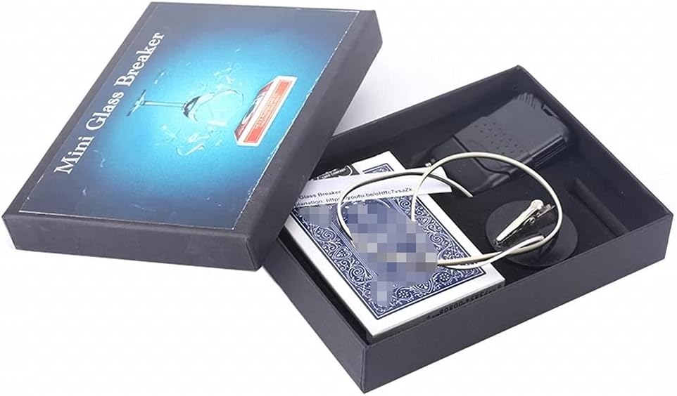 Mini corpo ma con una grande forza tale da rompere un vetro. Rompi un bicchiere in qualsiasi momento. L'intero prodotto viene fornito con un telecomando, un pressostato e uno speciale mazzo di carte. Vetro e batteria non sono inclusi. Il mini rompivetro può rompere qualsiasi vetro. Questo piccolo dispositivo può essere nascosto in un mazzo di carte, un pacchetto di sigarette, un libro o qualsiasi altro posto conveniente. Se non sei soddisfatto al 100% della qualità del prodotto, contattaci.