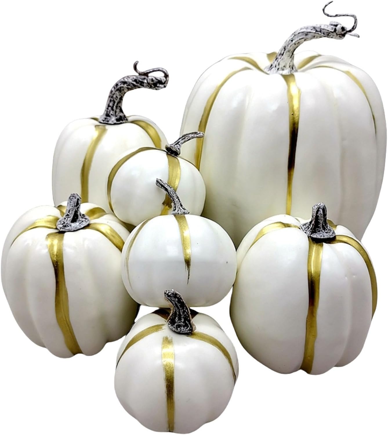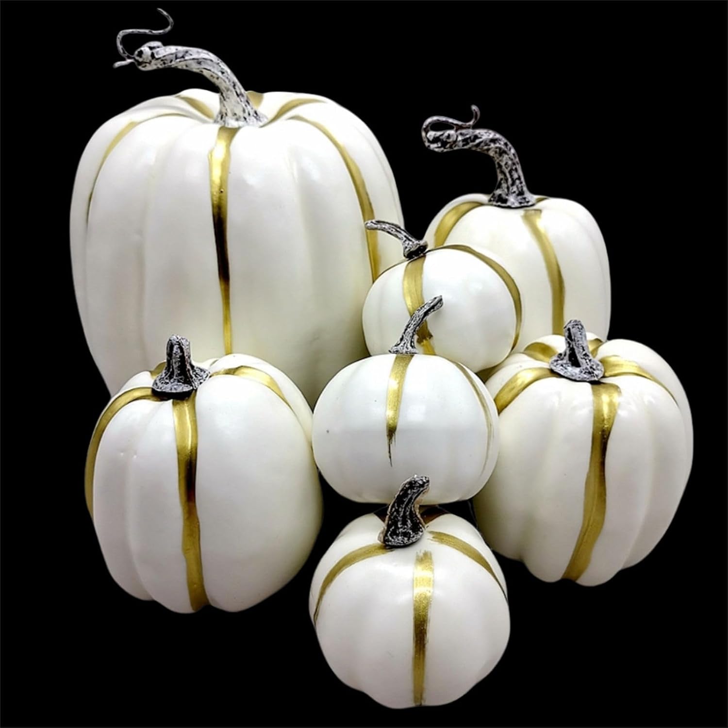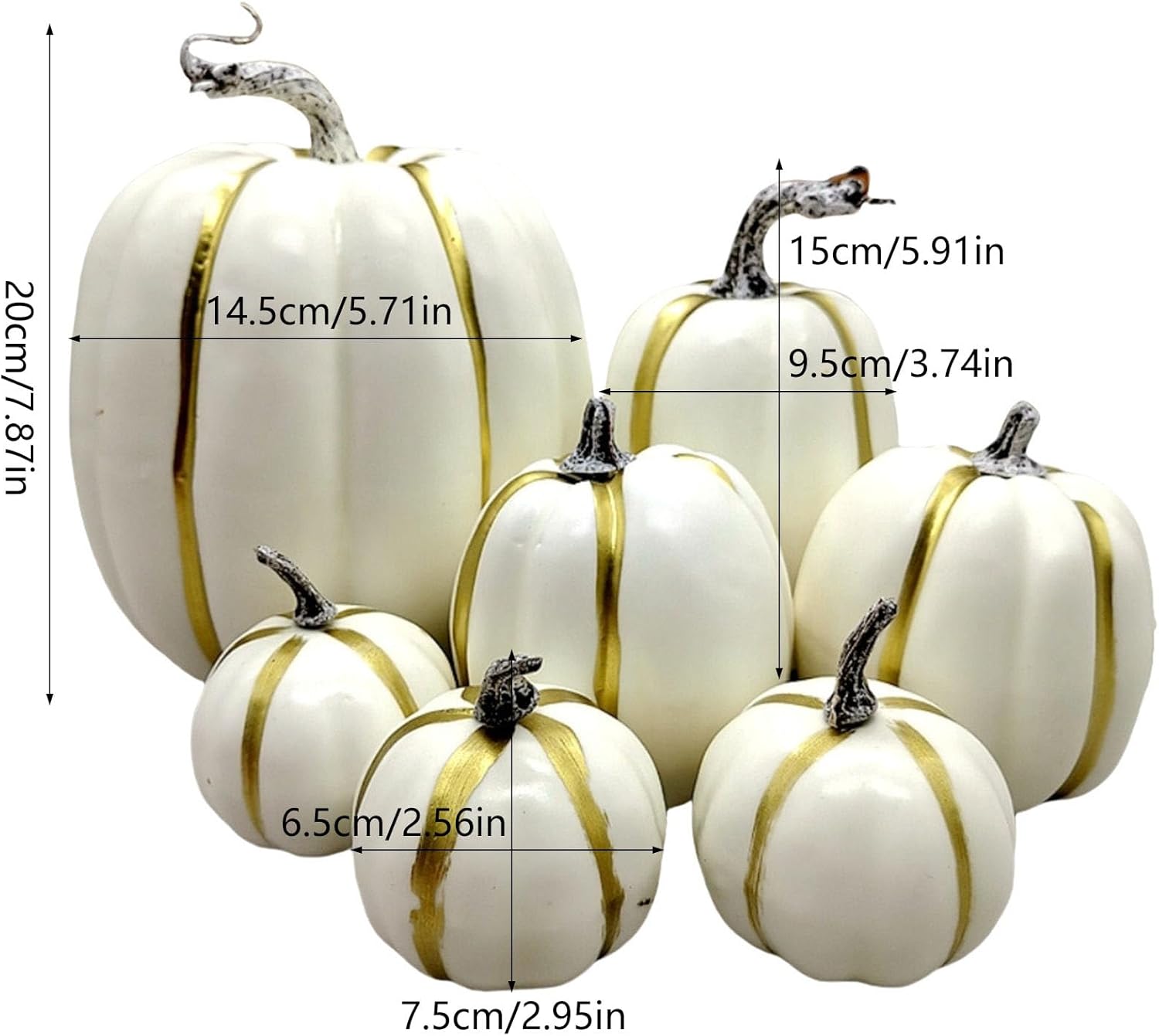Crea ricordi a lungo termine con questo delicato set di decorazioni che cattura la sensazione di caduta Migliora i tuoi decori festivi con il realistico set di zucche Ideale per famiglia, organizzatori di feste e appassionati che cercano di aggiungere un tocco di fascino al raccolto alle loro feste di Halloween e Ringraziamento Trasforma il tuo cortile, ufficio o spazio per eventi in incantevoli feste autunnali con queste zucche decorative Realizzate con attenzione ai dettagli, queste zucche in schiuma vantano intricati accenti dorati e scanalature dipinte a mano, garantendo un aspetto realistico