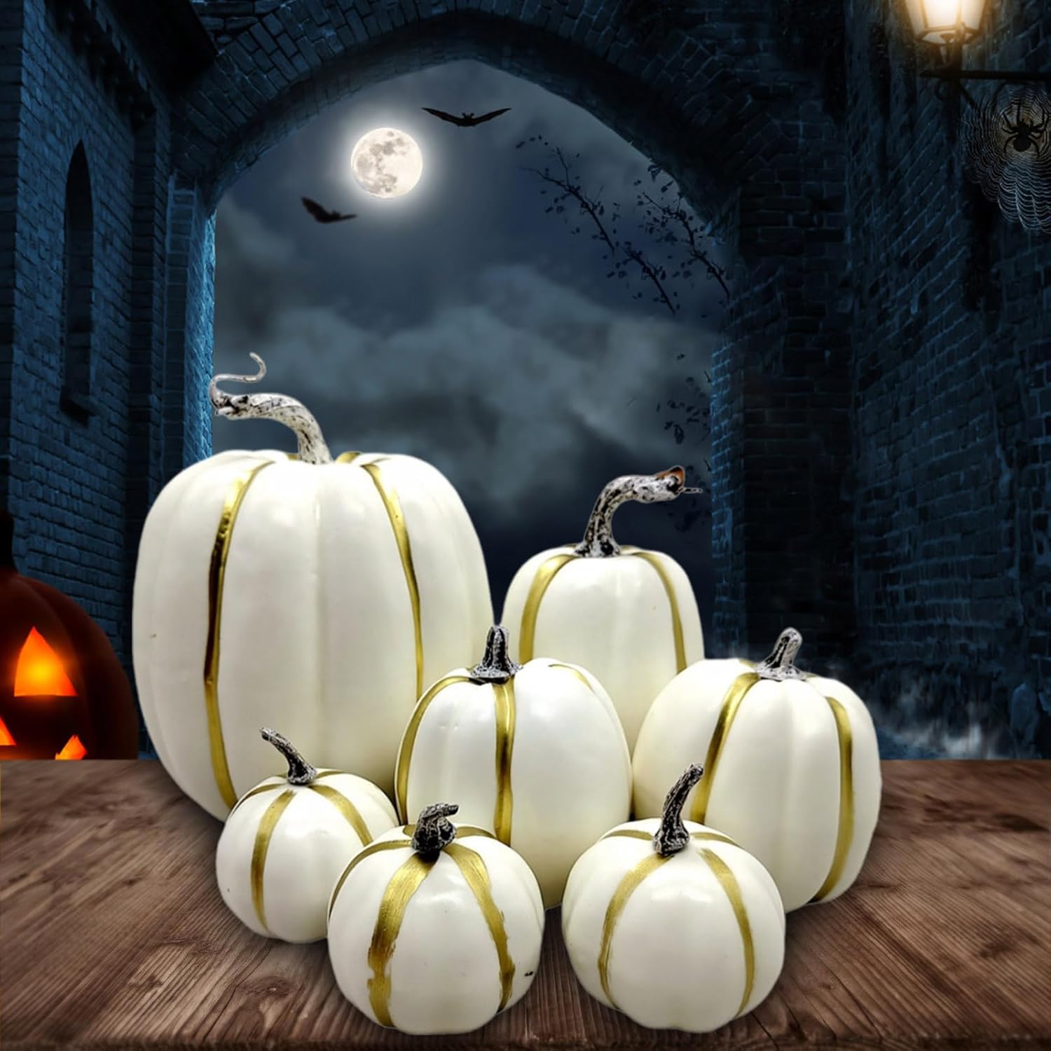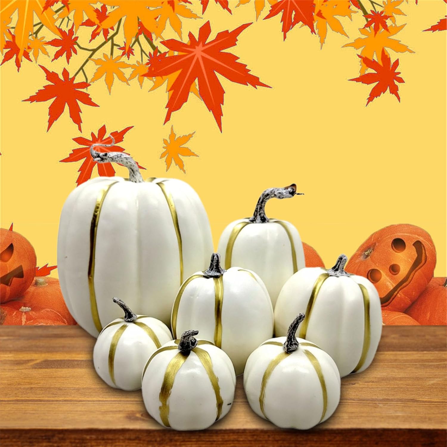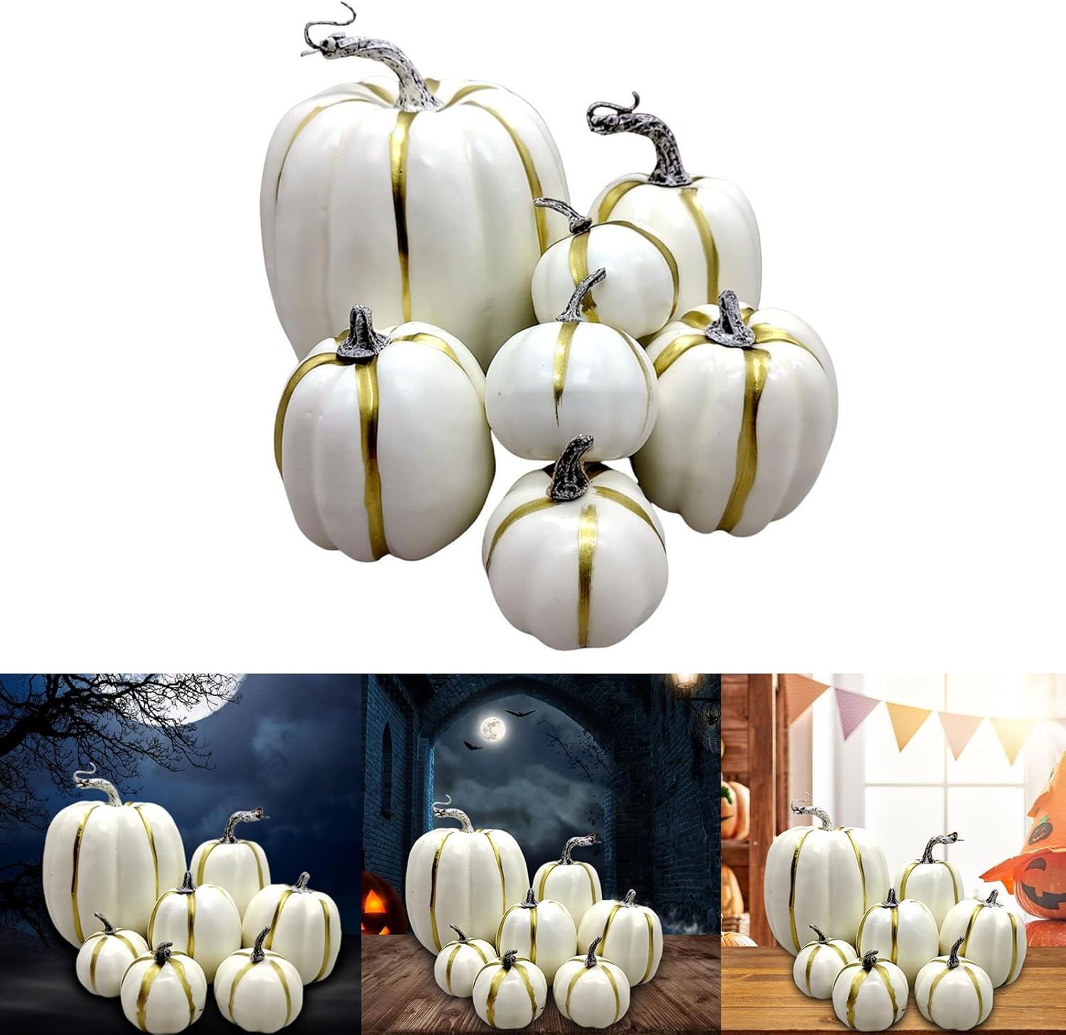 Crea ricordi a lungo termine con questo delicato set di decorazioni che cattura la sensazione di caduta Migliora i tuoi decori festivi con il realistico set di zucche Ideale per famiglia, organizzatori di feste e appassionati che cercano di aggiungere un tocco di fascino al raccolto alle loro feste di Halloween e Ringraziamento Trasforma il tuo cortile, ufficio o spazio per eventi in incantevoli feste autunnali con queste zucche decorative Realizzate con attenzione ai dettagli, queste zucche in schiuma vantano intricati accenti dorati e scanalature dipinte a mano, garantendo un aspetto realistico