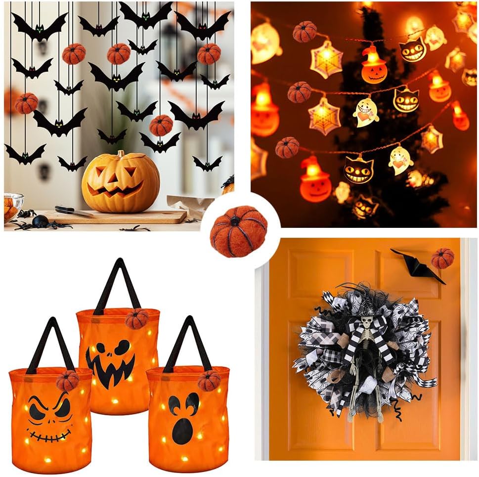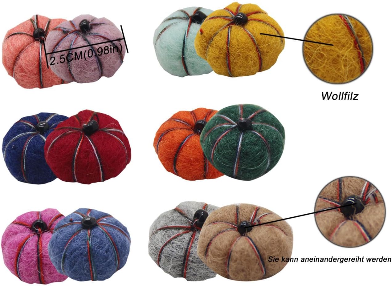 Zucca in feltro di lana: realizzato in materiale di alta qualità, nessun odore, sicuro da usare, morbido, durevole, facile da usare, leggero e riutilizzabile Mini zucca in feltro, dimensioni: lunghezza 2,5 cm, queste decorazioni a forma di zucca possono essere utilizzate per il giorno del Ringraziamento, Halloween, feste autunnali, riunioni di famiglia, matrimoni e altre occasioni per soddisfare la vostra casa e le vostre feste con il profumo del raccolto autunnale Zucca infeltrita a mano: può essere utilizzata in decorazioni da giardino di Halloween, cortili, balconi, terrazze, prati o pareti interne, e può anche essere appeso ovunque, soffitti, porte, finestre e alberi Decorazione a forma di zucca in feltro: perfetta per borse o decorazioni telefoniche, portachiavi, è semplice, per la mensola del camino, lo scaffale Decorazione a forma di zucca: può essere infilata come bandiera per Halloween, e questa palla di zucca in feltro di lana può essere un buon regalo per la tua famiglia e gli amici