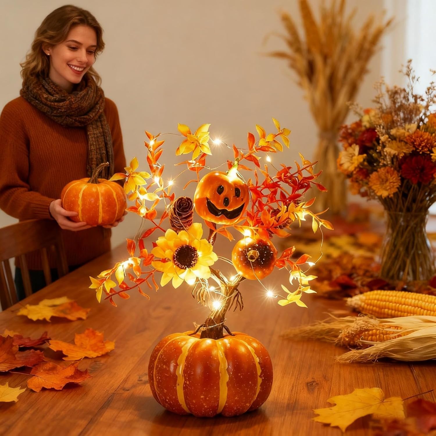 Miglioratore d'Atmosfera : Progettato per elevare l', emana una luminosità affascinante che migliora le ambientazioni festive, ideale per creare tradizioni autunnali preziosi con un effetto caloroso e invitante Decorazione con Benedizioni Calde: Caratterizzata da luci intermittenti calde che un'atmosfera accogliente, perfetta per trasmettere i migliori auguri stagionali; il design classico con dettagli arborei valorizza ambienti a tema raccolto, ideale per case, portici o raduni autunnali con inviti festivi Soluzione Decorativa Semplice: Nessuna installazione richiesta, funzionamento immediato. Adatte per tavoli e feste, la funzionalità plug-and-play aggiorna gli spazi velocemente, regalando eleganza luminosa e facilità assoluta per ogni occasione Stile Festivo Migliorato: Questa autunnale con luci incorpora elementi artificiali di zucche e bacche per arricchire l'estetica autunnale, ideale per tavoli e davanzali per elevare il fascino stagionale della casa con un design accogliente e festoso Incantevole Bagliore Autunnale:Questa decorazione autunnale a forma di con luci LED aggiunge un tocco elegante alla tua casa, con un design compatto per caminetti o ingressi, creando un'atmosfera accogliente e invitante per gli interni durante la stagione autunnale