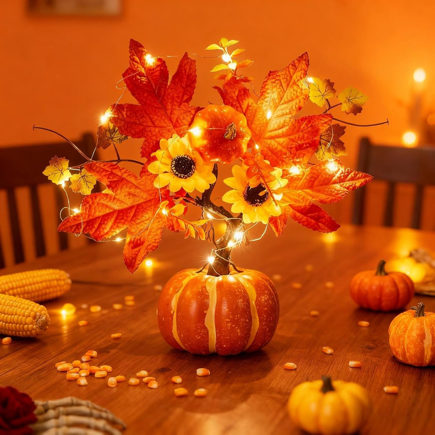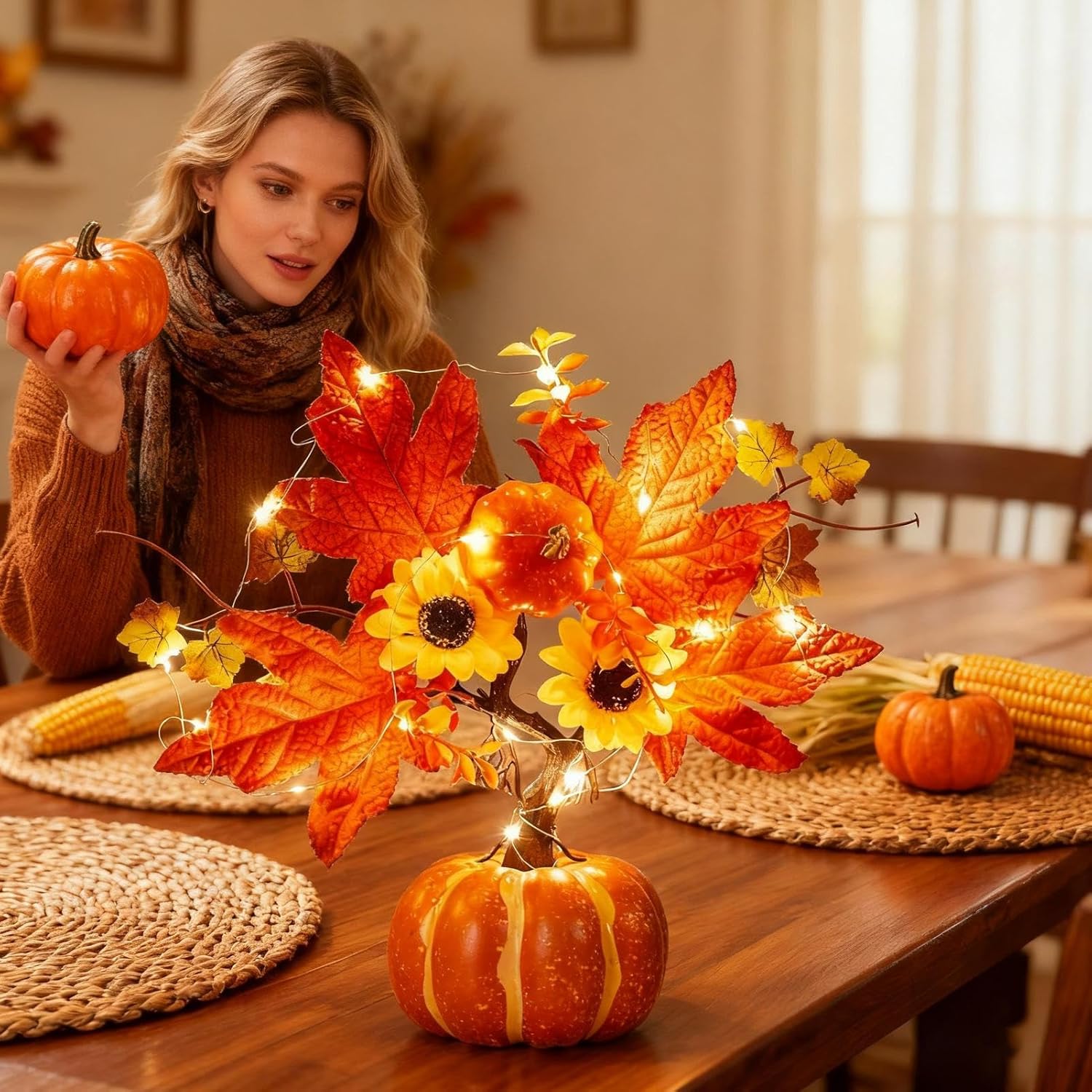 Miglioratore d'Atmosfera : Progettato per elevare l', emana una luminosità affascinante che migliora le ambientazioni festive, ideale per creare tradizioni autunnali preziosi con un effetto caloroso e invitante Essenziale Festa del Raccolto: Realizzato con luci calde intermittenti e dettagli arborei intricati, crea un'atmosfera accogliente per festività autunnali; versatile per interni o esterni come patii e ingressi, trasmette caldi auguri durante le serate autunnali migliorando l'ambiente con stile tematico Luce Pratica: Design ready-to-use che elimina procedure complesse. Perfette per ospitare eventi con stile, aggiungono charme senza preparativi, consentendo di concentrarsi sul divertimento con un'illuminazione affascinante e conveniente Atmosfera Autunnale Ricca: La decorativa con luci migliora l'arredamento stagionale attraverso elementi artificiali dettagliati che un'atmosfera autunnale , integrandosi perfettamente su tavoli o davanzali per mostre tematiche festive Display Stagionale Elegante:Questa decorativa LED autunnale presenta una forma compatta che migliora qualsiasi spazio con un'atmosfera elegante, ideale per decorare caminetti e ingressi creando un caldo ambiente stagionale interno durante le celebrazioni autunnali