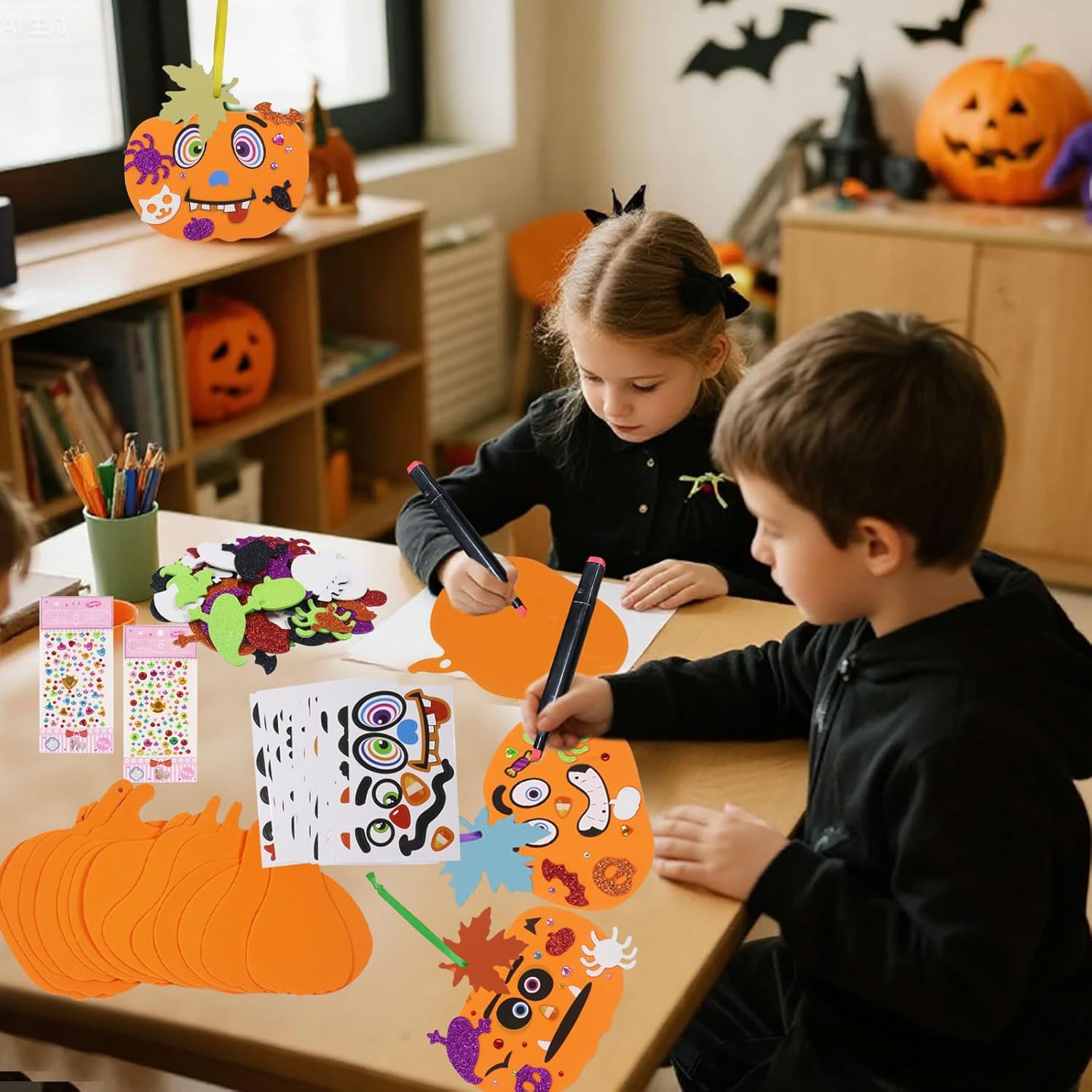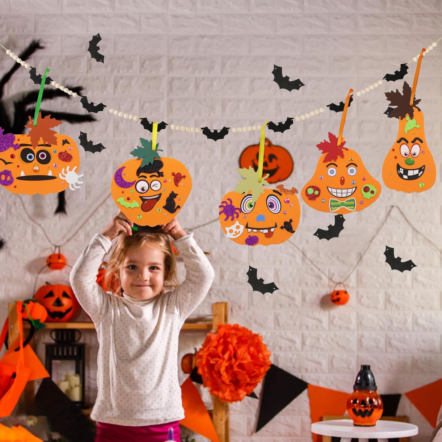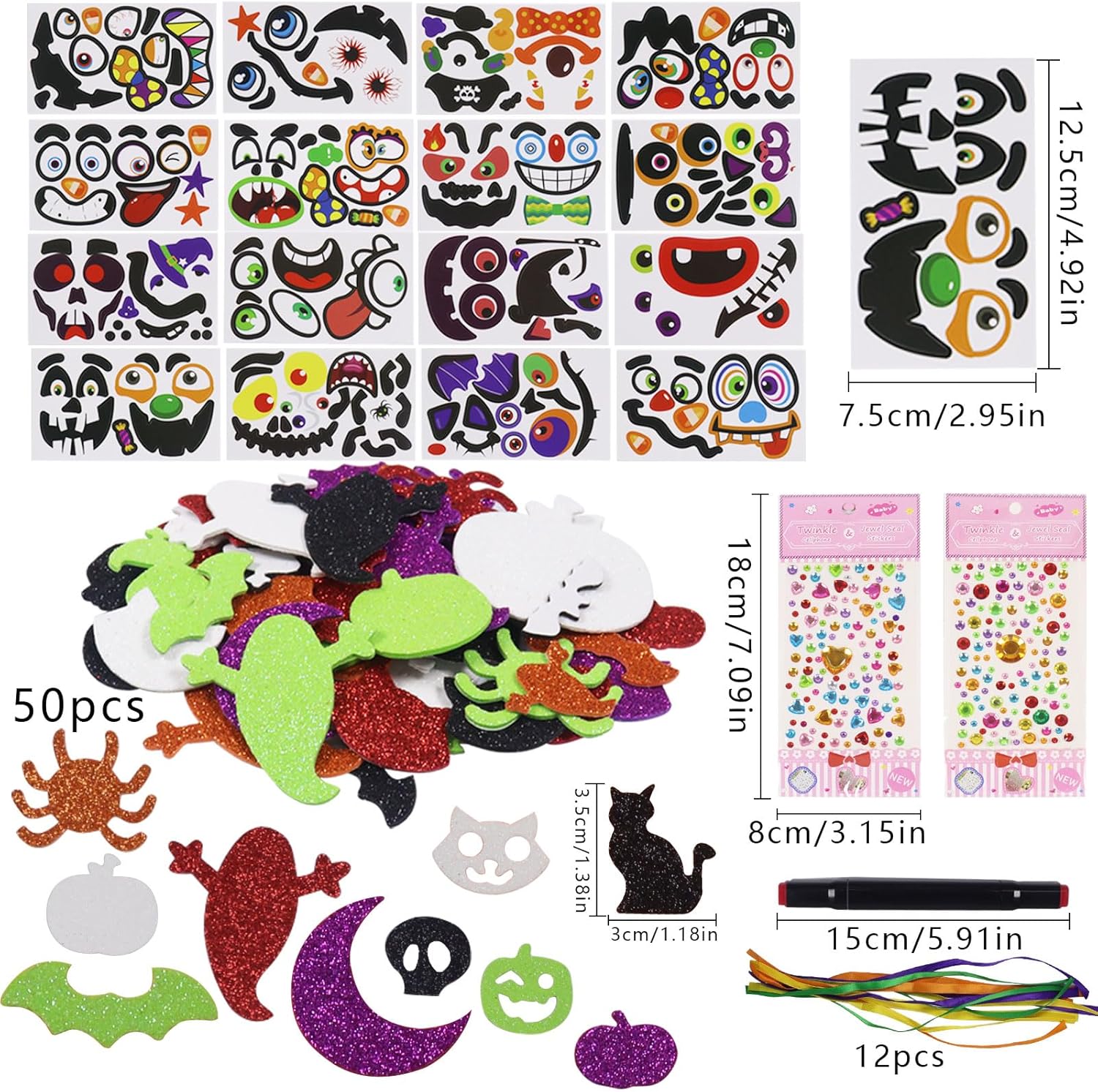 Adesivi in schiuma di zucca di Halloween: il set per il fai da te contiene 12 pezzi di schiuma di zucca + 16 adesivi di espressione fai da te + 12 fogli + 12 corde + circa 50 piccoli adesivi + 2 adesivi diamantati + 1 penna rossa Materiali di alta qualità: la decorazione in feltro di zucca fai da te è realizzata in schiuma e carta, zucche e ornamenti sono realizzati in schiuma con un retro appiccicoso, leggero e resistente, riutilizzabile, che garantisce un gioco lungo Stimola la creatività: il kit per creare zucca stimola la creatività e l'immaginazione del tuo bambino e i colori vivaci allenano la percezione del colore. Promuovi le abilità pratiche dei bambini e suscita il loro interesse per l'apprendimento Interazione con i genitori: puoi farlo con i bambini fai da te kit di zucca fai da te, puoi mostrare al tuo bambino come esso, i bambini possono dipingere sulla superficie della carta autoadesiva vuota o incollare adesivi, rafforzare il legame genitori-figlio e allo stesso tempo offrire molto divertimento Ampio utilizzo: kit fai da te per zucca ideale per compiti a casa, attività di festa, artigianato. Kit fai da te per decorazioni autunnali, feste, celebrazioni, Natale, carnevale, festival, Ringraziamento e altre decorazioni