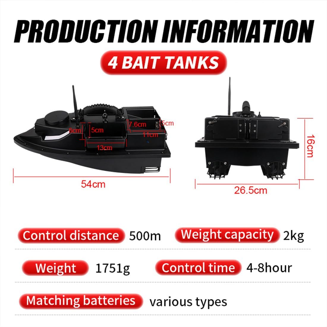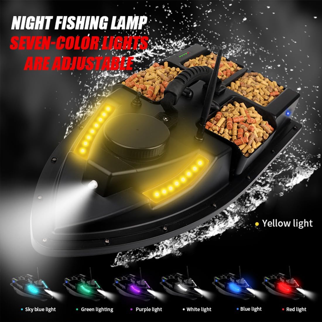 Prestazioni potenti: la barca ZV9 RC Bait è dotata di doppi motori e doppie eliche, offrendo una forte spinta e una conversione efficiente dell'energia per garantire una navigazione stabile, adatta a vari ambienti di pesca Durata estesa: dotato di una potenza integrata ad alta capacità da 25.000 mAh, consente di godere di sessioni di pesca prolungate senza frequenti ricariche, specificamente progettato per gli appassionati di pesca all'aperto Navigazione intelligente: dotato di telecomando a 2,4 GHz e GPS con 100 punti di posizionamento, offre un raggio d'azione fino a 500 metri e supporta funzioni come il ritorno one-touch e la crociera automatica, rendendo la tua esperienza di pesca più comoda e piacevole Precisa consegna dell'esca: la ZV9 dispone di quattro scomparti indipendenti per esche, che consentono di fornire l'esca esattamente in base alle proprie esigenze specifiche, adattandosi perfettamente a diversi tipi di esche e aumentando il tasso di successo della pesca Illuminazione per visione notturna: include un sistema di illuminazione per la visione notturna con un faro bianco brillante e sette luci laterali regolabili, garantendo una navigazione chiara al buio e comodità per tutti gli appassionati di pesca