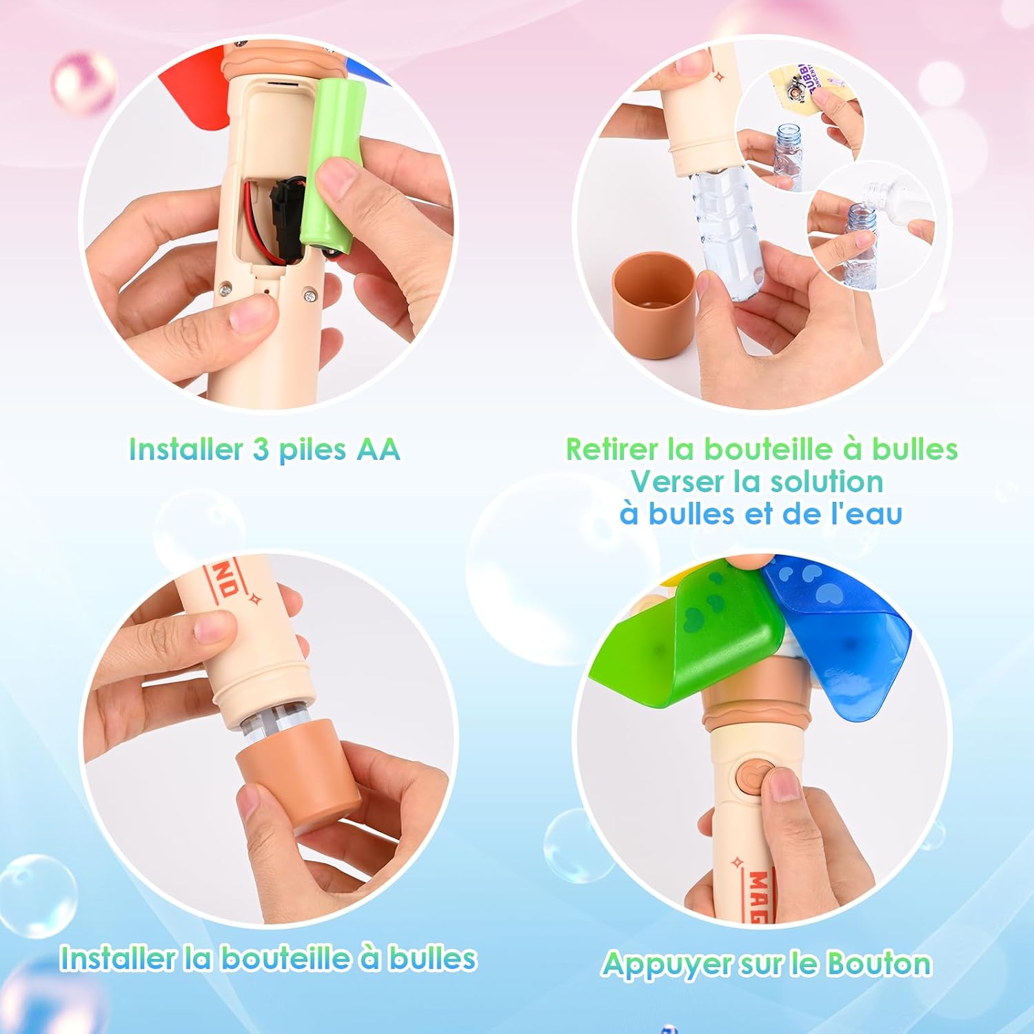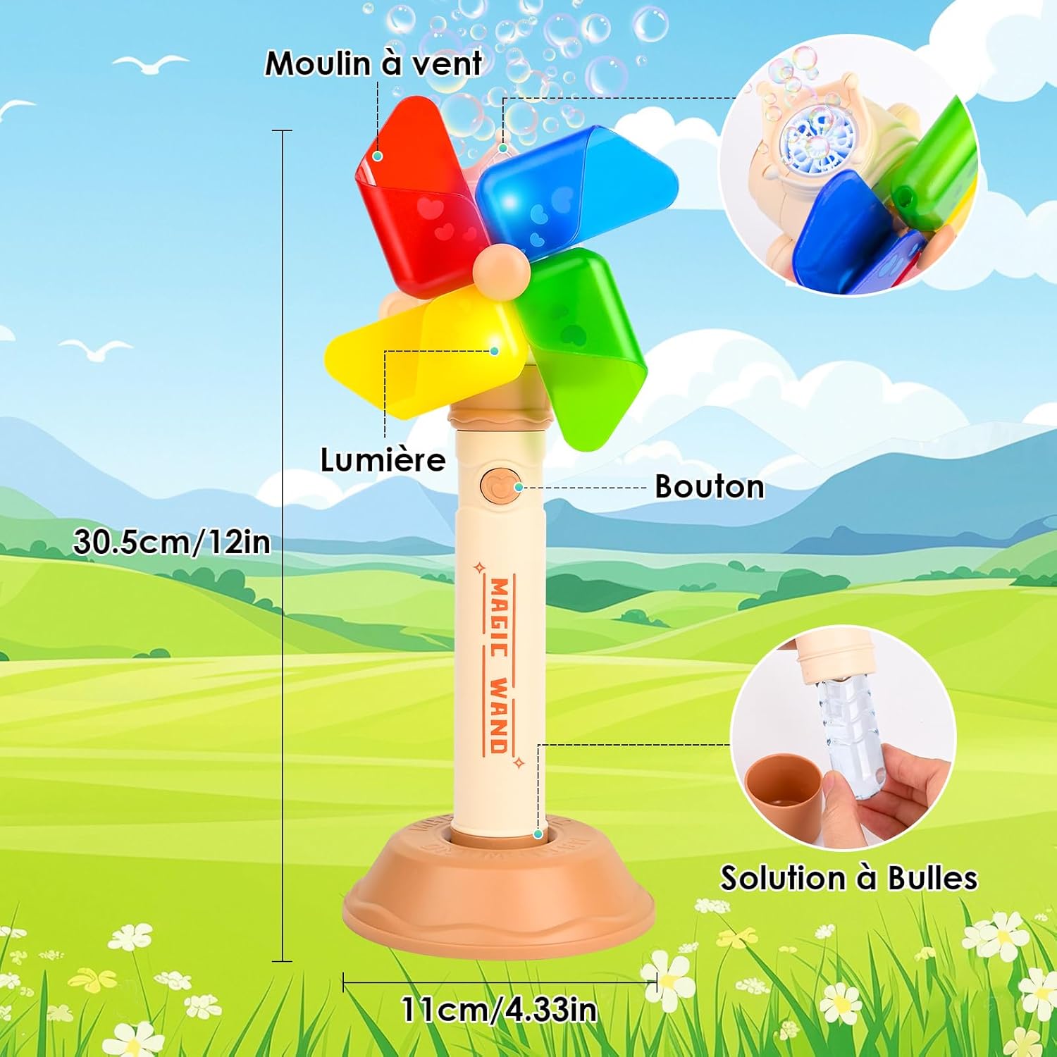ROTAZIONE DEL MULINO A VENTO: guarda il nostro accattivante mulino a vento girare, facendo volare bolle e facendo vorticare divertimento nell'aria! Ogni momento di gioco cattura l'attenzione dei bambini e stimola la loro immaginazione EFFETTI LUCI E MUSICA: luci abbaglianti e musica allegra danno vita a qualsiasi festa! Questa accattivante combinazione aggiunge un tocco di eccitazione e trasforma qualsiasi spazio in un magico mondo di bolle FORTE E DUREVOLE: Realizzata in ABS di alta qualità, questa macchina per bolle resiste a giochi intensi, cadute e avventure all'aria aperta - per un divertimento che dura FACILE DA INSTALLARE: Il divertimento inizia in pochi secondi! Basta versare il liquido per bolle e l'acqua nella bottiglia, inserire le batterie e godersi subito un mondo pieno di bollicine. Molto pratico per i genitori: ideale per il gioco spontaneo o una festa improvvisata TANTE BOLLE: produce un flusso continuo di bolle, riempiendo l'aria di gioia! Perfetto per feste di compleanno, giochi all'aperto o divertimento quotidiano in giardino