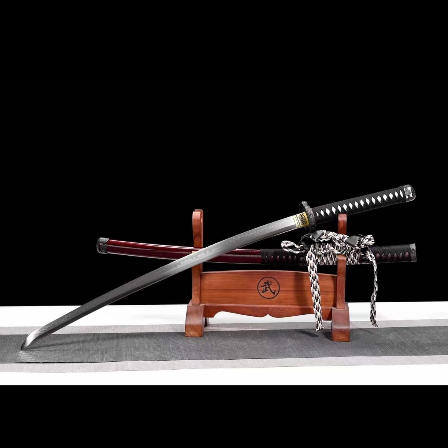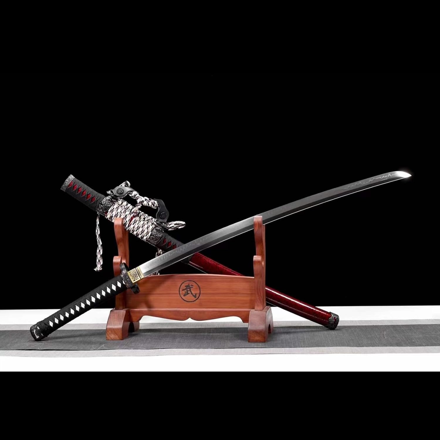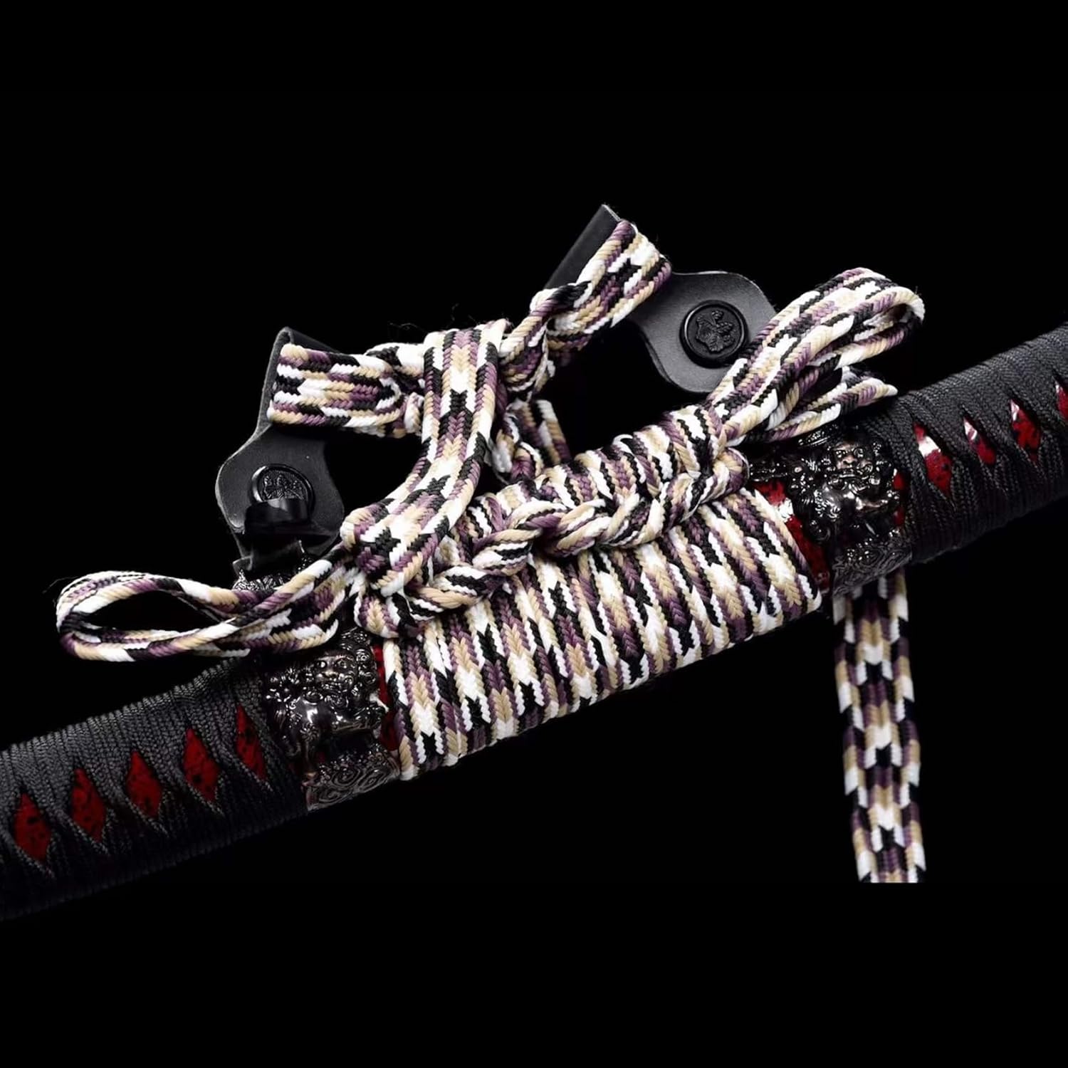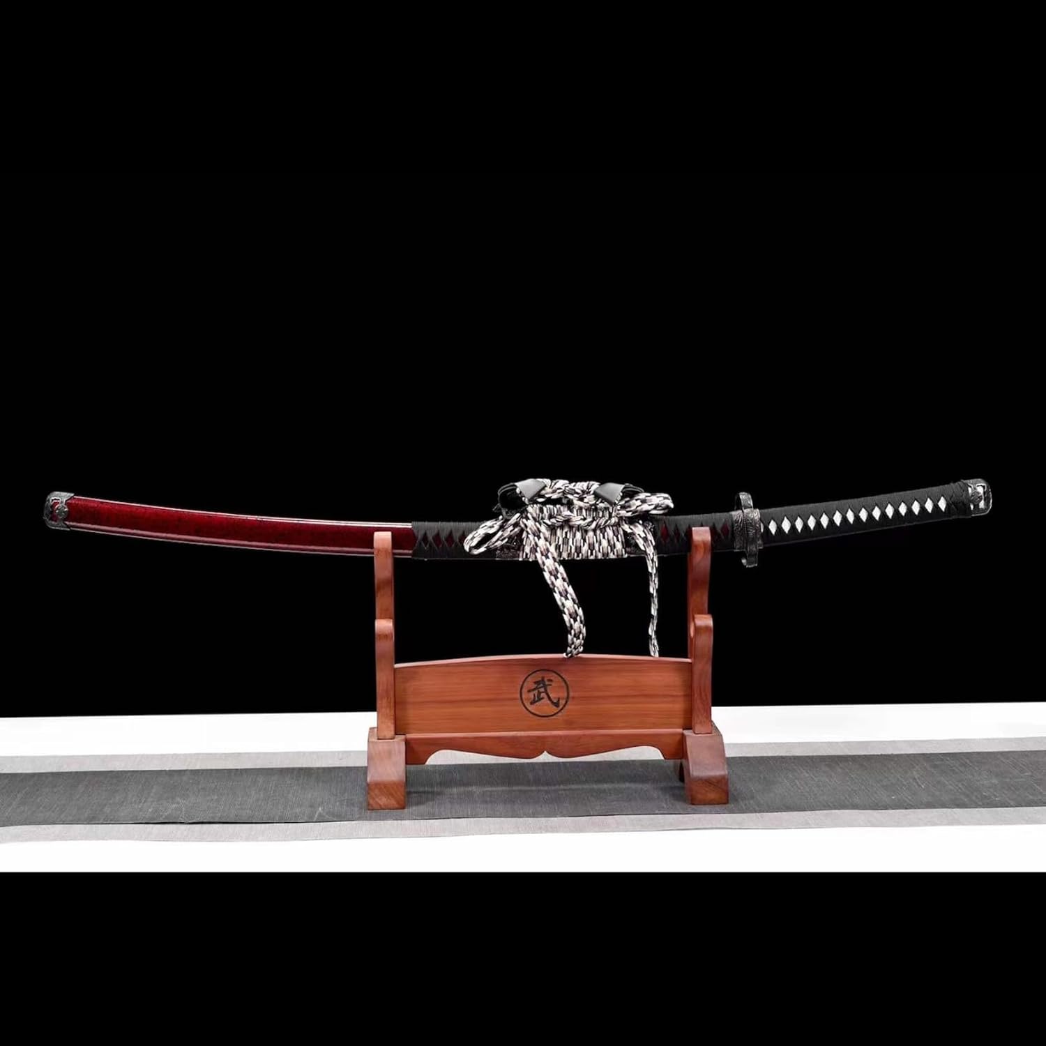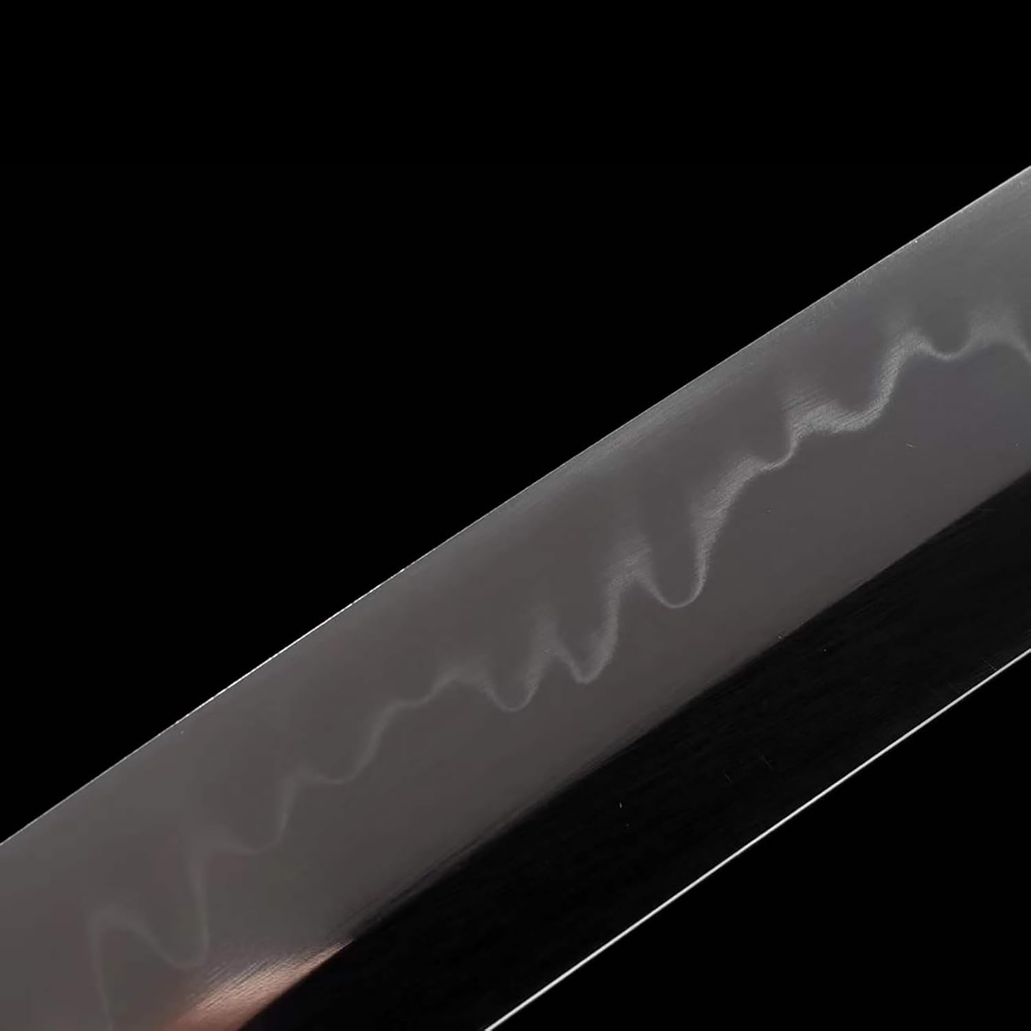 Questa katana utilizza tecniche di forgiatura tradizionali e il processo di forgiatura segue rigorosamente metodi antichi. Il bell'aspetto e le linee morbide sono il risultato del duro lavoro del fabbro e mostrano perfettamente il fascino unico della spada katana. La spada katana è realizzata in acciaio T10 con una lama accuratamente lucidata e brillante. Non è solo pratico ma anche un tesoro agli occhi dei collezionisti. La custodia è realizzata in legno massello verniciato a spruzzo e combinata con squisite corde spesse. È bello ed elegante e i dettagli testimoniano la sua qualità. Mostra l'eleganza di una spada da samurai. La lunghezza totale è di 104 cm, la lama è lunga 71 cm e larga 3,2 cm e il manico è lungo 27 cm. Le spade Katana sono adatte per essere collezionate ed esposte in varie occasioni. Che sia appeso nello studio, nel soggiorno o nello studio di arti marziali, può diventare una decorazione unica e un pezzo da esposizione. Non solo riflette il gusto e la personalità del proprietario, ma conferisce anche alla stanza un'atmosfera misteriosa e solenne. La katana non solo ha eccellenti capacità pratiche, ma è anche un'elegante opera d'arte. La lama è affilata e può facilmente soddisfare le varie esigenze di combattimento reali. La loro forma e design unici le distinguono da molte armi, rendendole la prima scelta per collezionisti e appassionati di arti marziali. Realizzate con materiali di alta qualità e realizzate con cura da abili artigiani utilizzando le tradizionali tecniche di fusione, le nostre spade da samurai ti porteranno attraverso il lungo fiume della storia per sperimentare la bellezza unica delle armi fredde. Per i clienti che amano lo stile retrò, la cultura bushido e le armi da taglio, sono tesori rari.